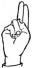 На ћирилици написано ЕЛМА ДАБИЋ састоји се из 9 слова [?]. Исписано ћириличном једноручном азбуком за глувонеме: